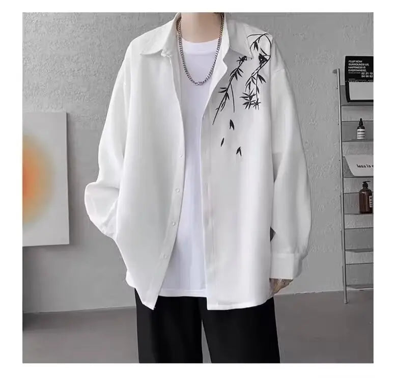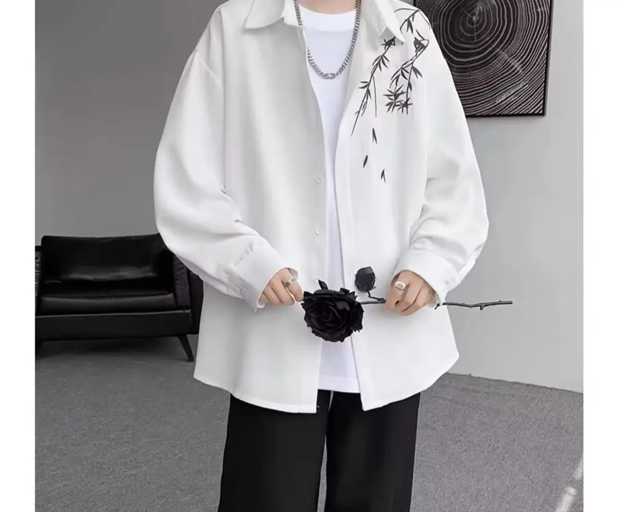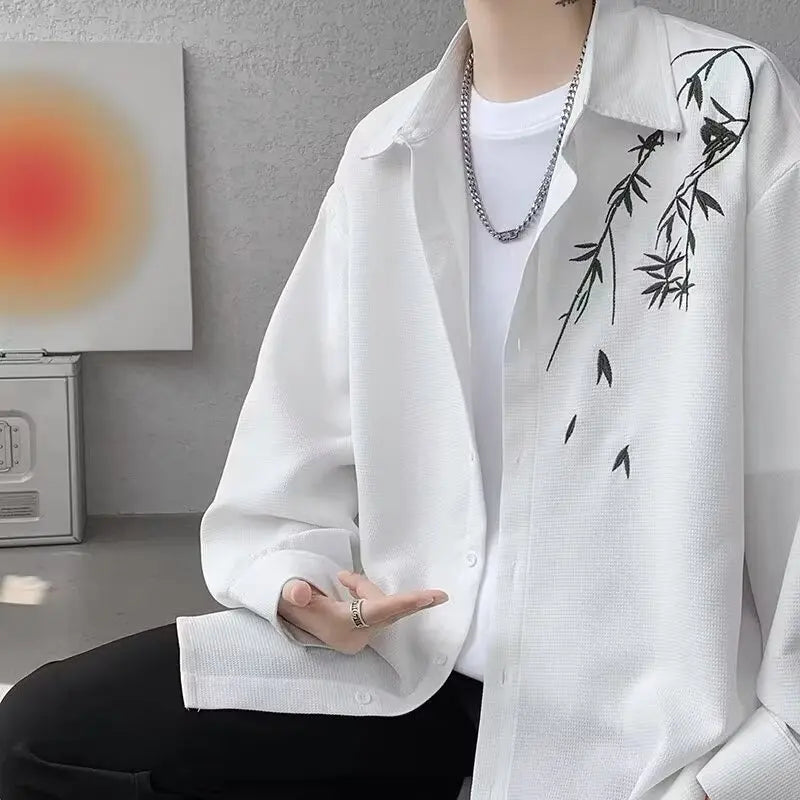 New Chinese Sle Long Sve Men's irt Embroidered Casual Thin Spring Loose Haome Cotton Flannel irt Jaet